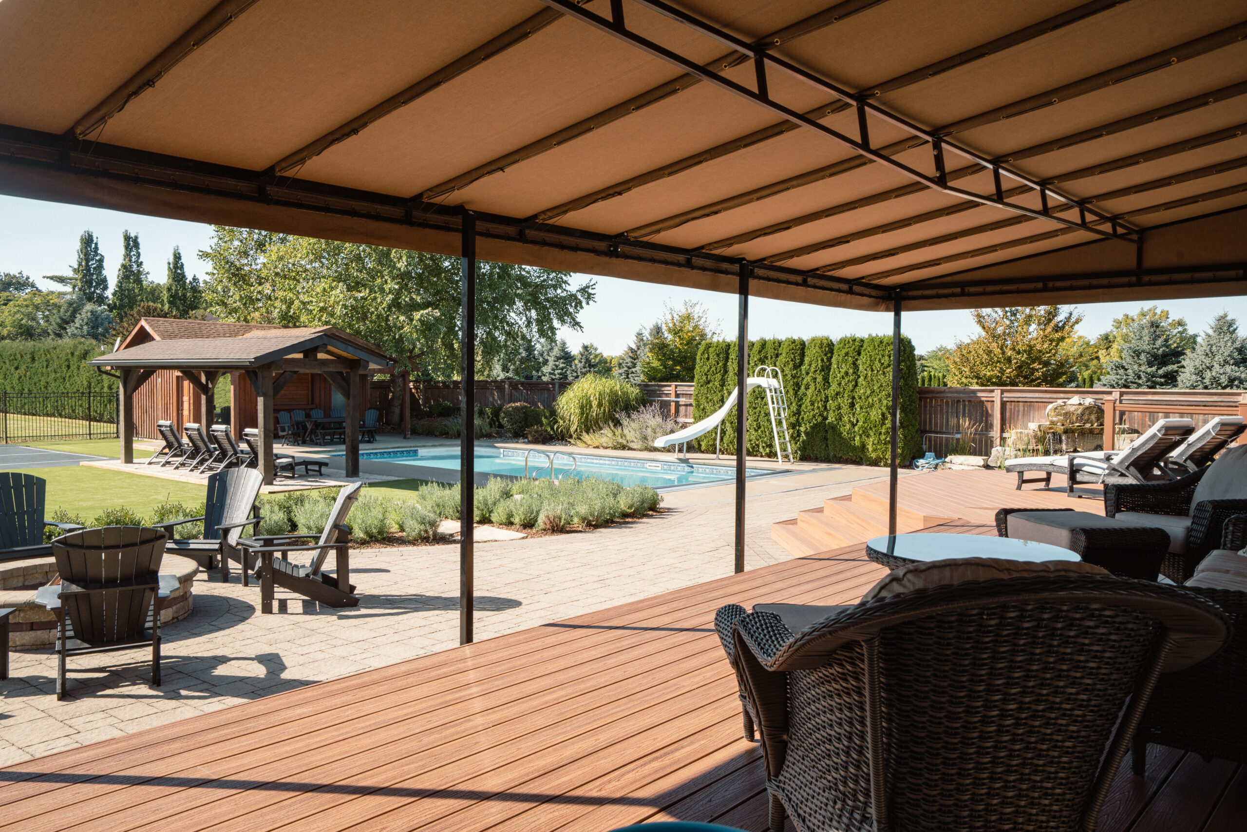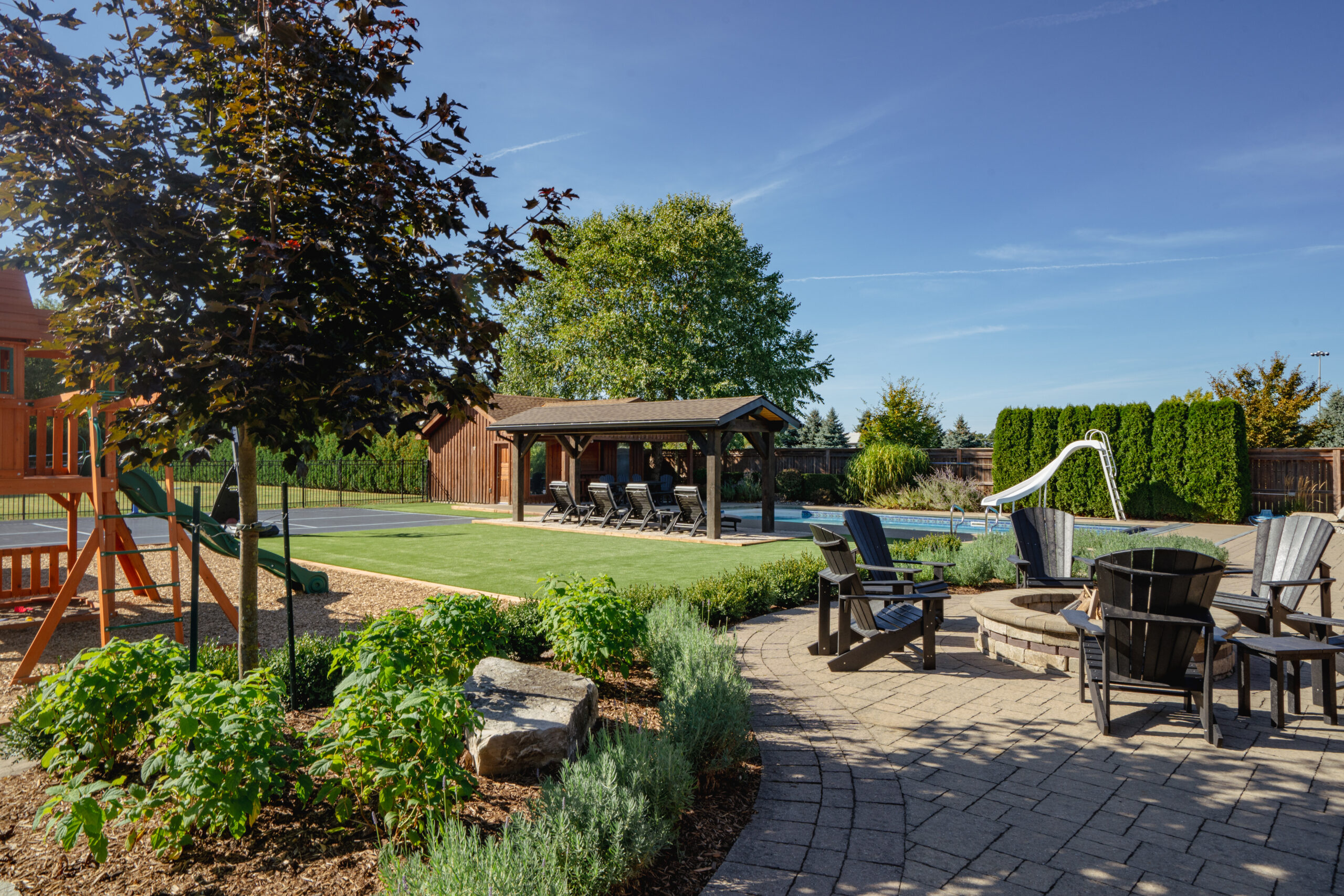 Broadmore Court is a St. Catharines backyard built without compromise. A pool, multi-sport court, fireplace, bar, and a landscape designed to handle everything from quiet evenings to full-scale gatherings. Originally built by Fairview years ago, this property came back to us in 2025 for a new chapter. Some properties grow with their families. This is one of them.